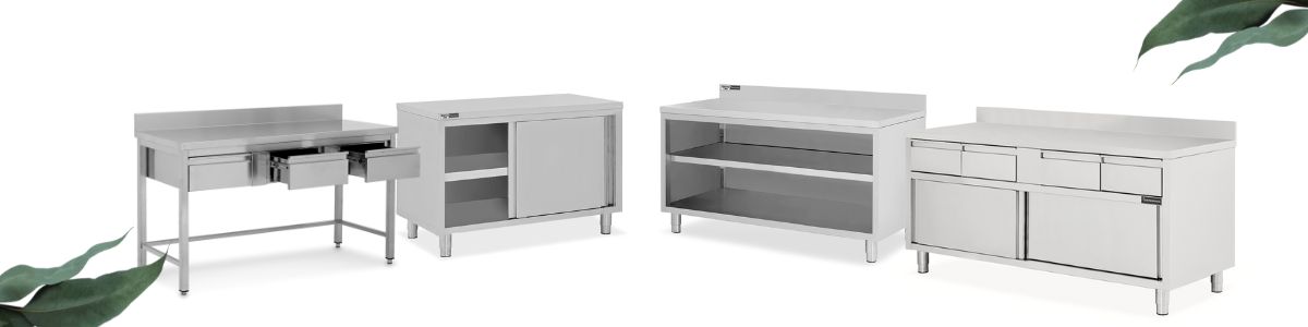 L’alzatina posteriore protegge la parete da schizzi e residui. Un ripiano intermedio aumenta la superficie di appoggio per utensili e macchinari, mentre accessori come ruote, cassetti o lavelli integrati ne ampliano la funzionalità. - Versioni riscaldate: quando servono davvero