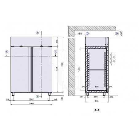La refrigerazione è ventilata e viene regolata tramite pannello di controllo digitale touch e l'isolamento in poliuretano iniettato ad alta pressione senza CFC o HCFC con uno spessore di 80 mm garantisce un'ottimale conservazione all'interno della cella.