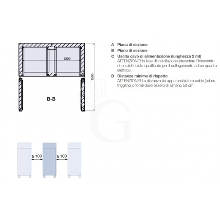Armadio refrigerato con capacità 1400 litri predisposto per l'inserimento di griglie GN 2/1 realizzato in acciaio inox con temperatura -18°C/-22°C con 2 porte vetro.