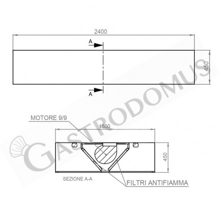 - Lunghezza cappa 2400 mm