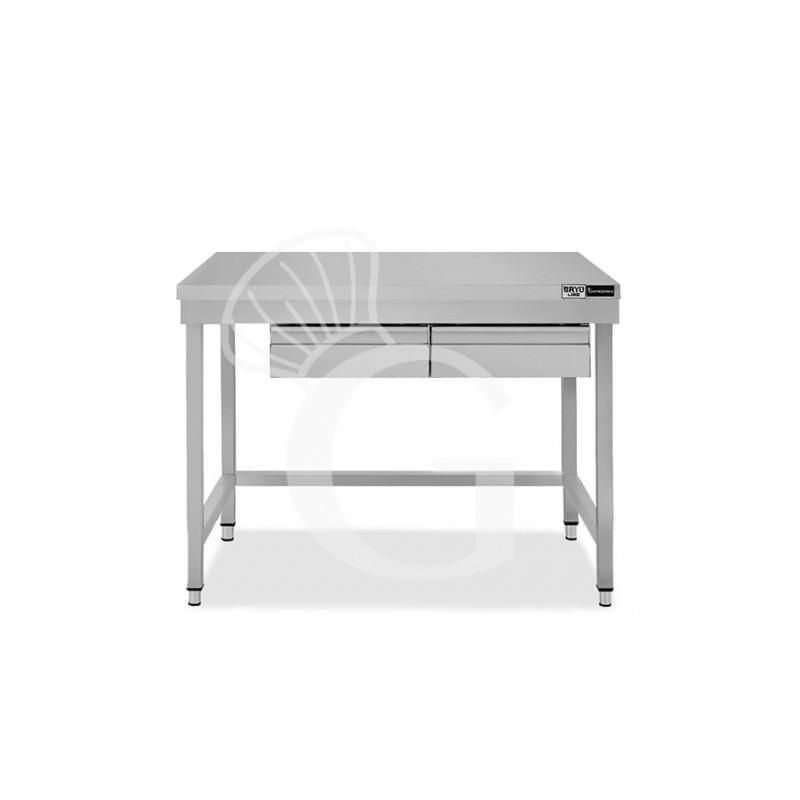 Tavolo semplice in acciaio inox con 2 cassetti e lunghezza 1000 mm x profondità 800 mm x altezza 865 mm.