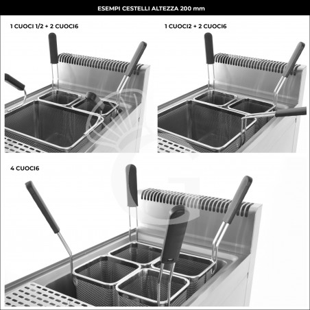 Il cuocipasta è predisposto per le seguenti combinazioni di cestelli per ogni vasca: