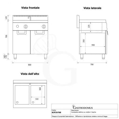 Cuocipasta professionale elettrico su mobile chiuso 2 vasche, 40 Lt + 40 Lt, 24 Kw Prof.700