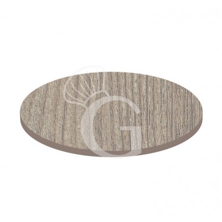 Piano rotondo in stratificato HPL grey wood, Ø 600 mm, spessore 10 mm.