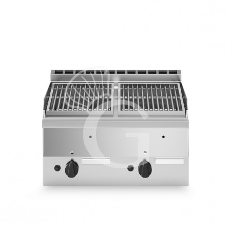 Griglia a gas e pietra lavica da banco con 2 zone di cottura in acciaio e profondità 600 mm.