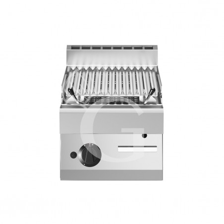 Griglia a gas e pietra lavica da banco con 1 zona di cottura in acciaio e profondità 700 mm.