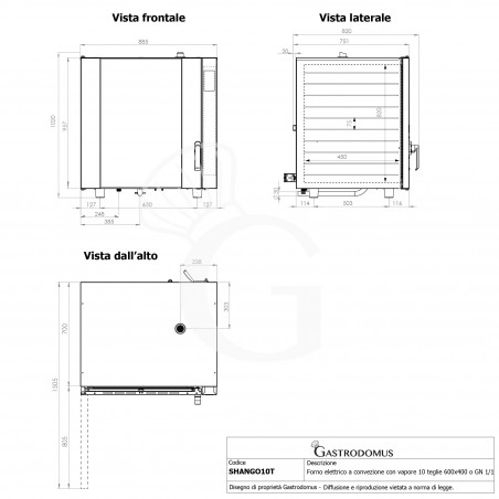 - Predisposizione teglie 10 teglie GN 1/1 o 600x400mm