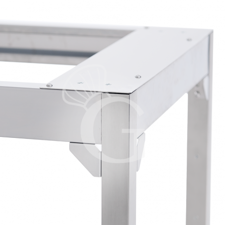 Basamento in acciaio inox con ripiano L 720 x P 585 x H 520 mm.