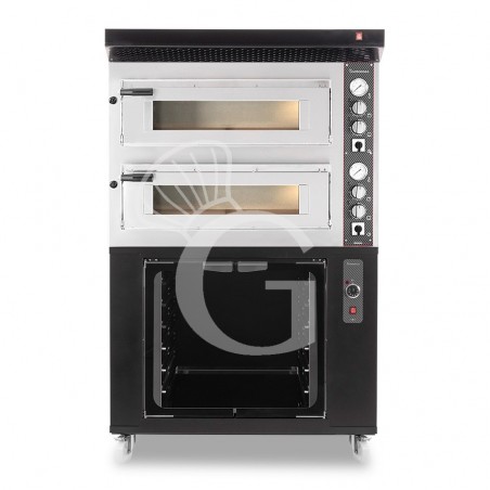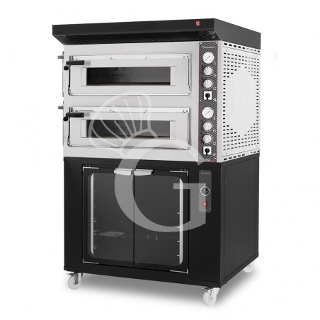 Forno Elettrico 2 camere per 4+4 pizze Ø 350 mm, controllo meccanico, completo di cappa nera e cella di lievitazione nera
