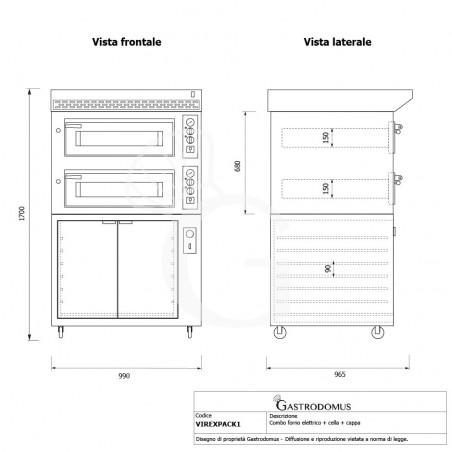 - Dimensioni esterne L 990 mm x P 965 mm x H 1700 mm