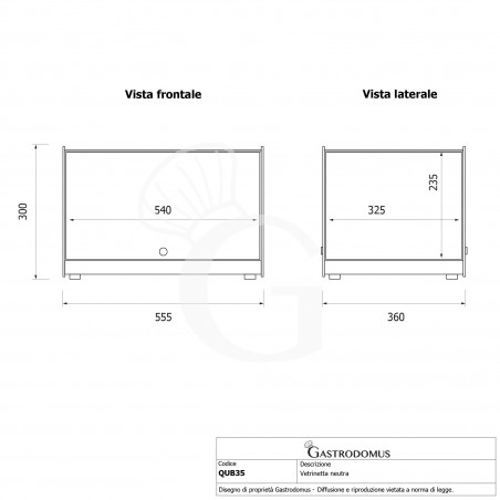 Vetrina Bar Neutra porta brioches in vetro piano in inox L 555 mm x P 360 mm x H 300 mm