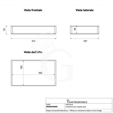 - Dimensioni esterne L 595 mm x P 397 mm x H 92 mm