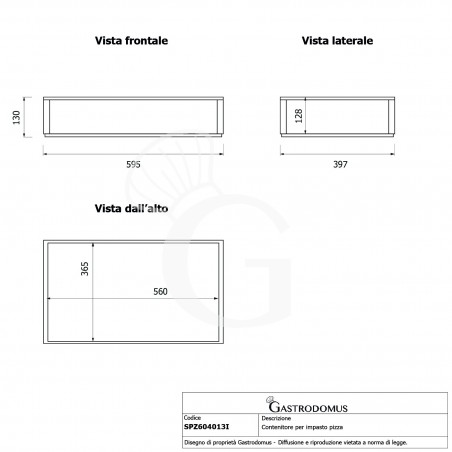 - Dimensioni esterne L 595 mm x P 397 mm x H 130 mm
