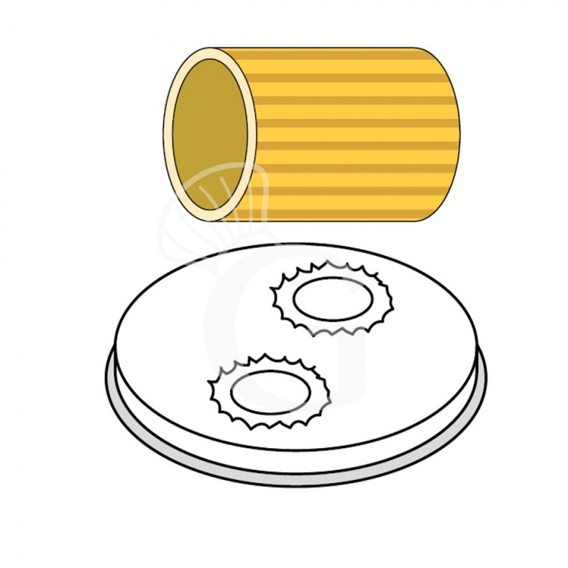 Realizzata in bronzo-ottone di alta qualità, questa trafila garantisce una trafilatura tradizionale che dona ai maccheroni la giusta porosità, perfetta per trattenere i condimenti. Compatibile con macchine per pasta fresca MPF2,5N, MPF2,5NC, PF40EMN, PF40ETR, MPF/4N e dotata di fori da 15 mm per un formato autentico e uniforme.