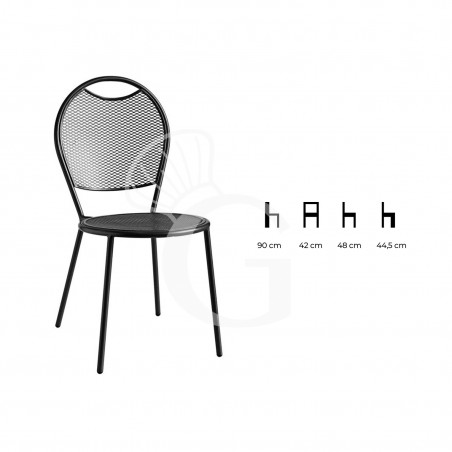 La struttura è alta 900 mm mentre l’altezza della seduta misura 445 mm. Inoltre è facilmente impilabile per un'ottima gestione degli spazi.