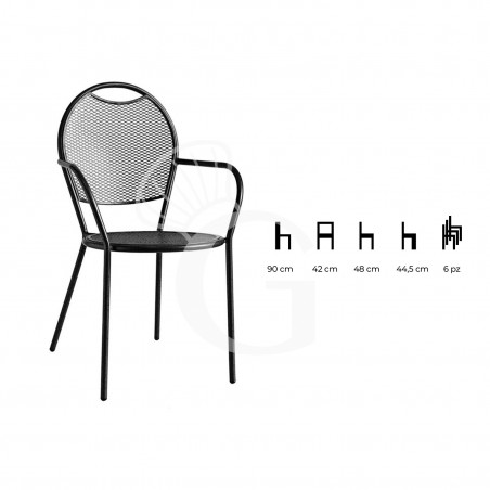 La linea con comodi braccioli e il materiale resistente la rendono adatta ad ambienti esterni per arredare in modo moderno giardini, terrazze, spazi esterni di bar e ristoranti.