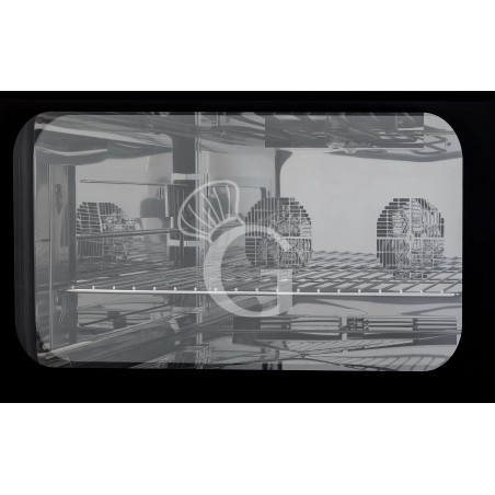 La struttura del forno, con porta a ribalta e maniglia maneggevole, permette di utilizzare fino a 4 teglie di dimensioni 600 mm x 400 mm e di rimuovere facilmente le cremagliere. La camera con angoli arrotondati permette la facile pulizia del forno e la base della camera di cottura diamantata facilita lo scarico della condensa interna.
