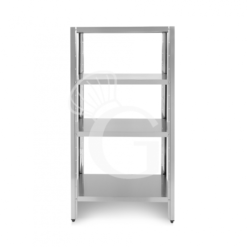 Lo scaffale ha una robusta struttura in acciaio INOX inossidabile con finitura Scotch Brite.