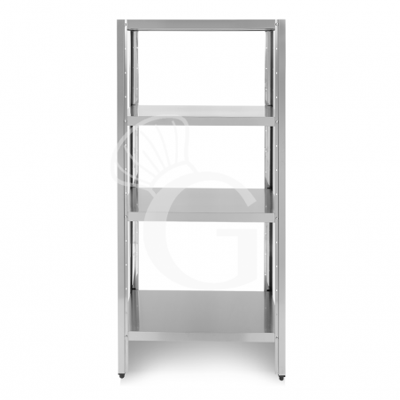 Lo scaffale ha una robusta struttura in acciaio INOX inossidabile con finitura Scotch Brite.